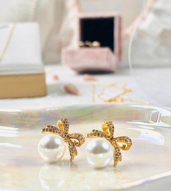 可愛らしいリボンモチーフに、パールを合わせて女性らしい上品スタイルの完成。