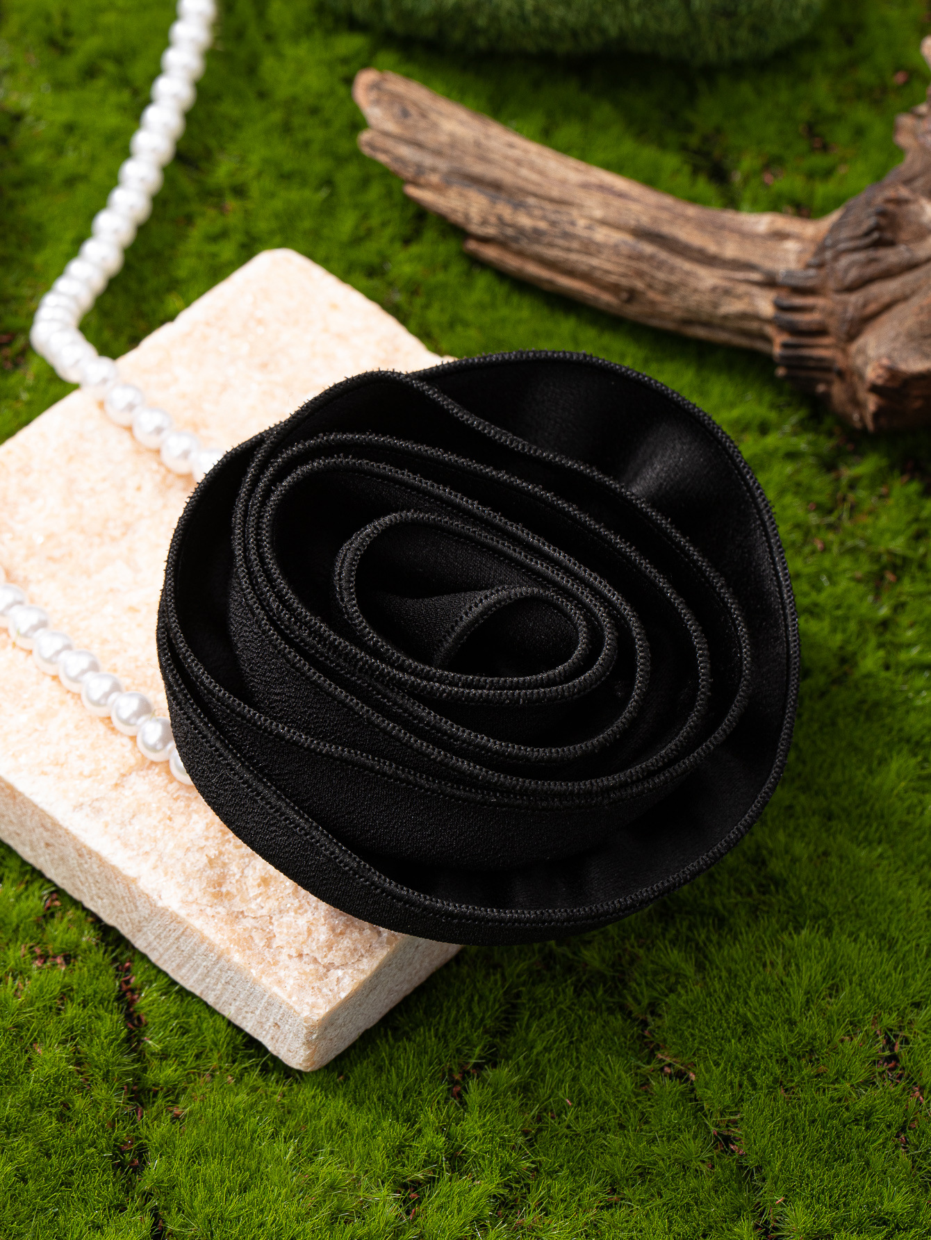 サテンリボンのフラワーを飾った、クラシックなパールネックレス。ドレスアップスタイルに活躍する。